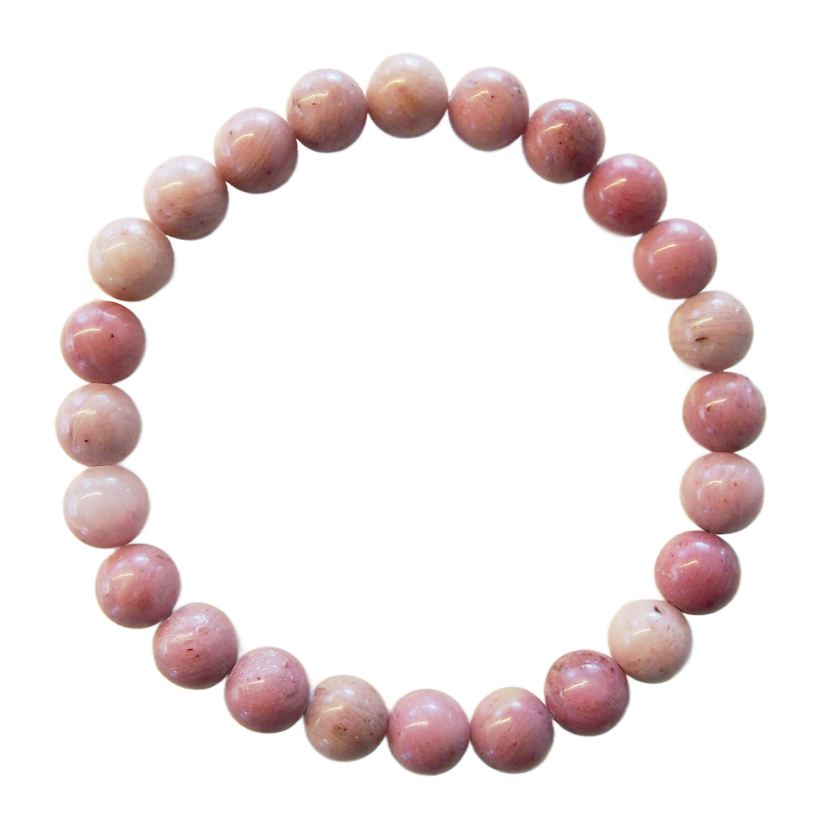 Bracciale in vera pietra con perle di pietre preziose da 8 mm, con elastico per adattarsi a tutte le misure di polso. La rodonite è molto utile per la guarigione delle ferite del corpo.